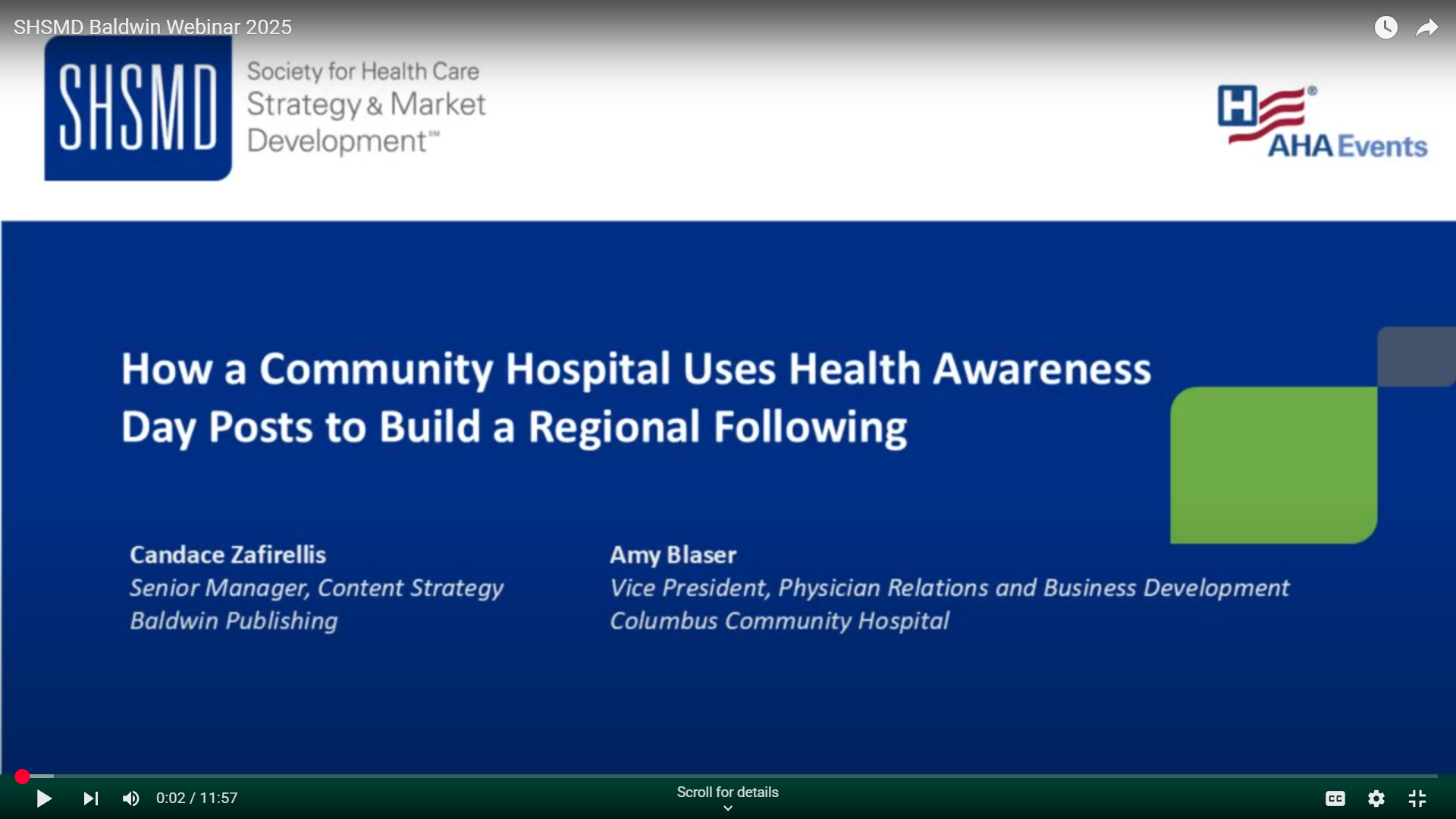 Take a behind-the-scenes look at how Columbus Community Hospital’s marketing team is growing to meet the needs of their community. This webinar explores how the team leverages monthly health awareness content—including articles, recipes, graphics, and videos—across their website and social platforms. "